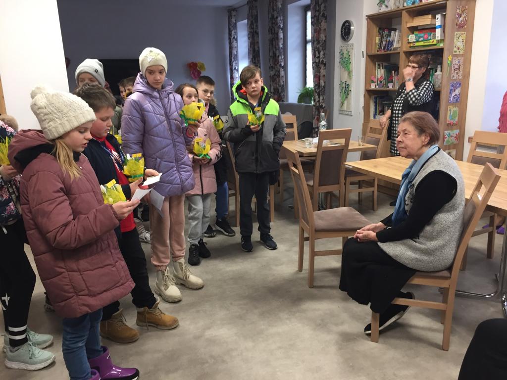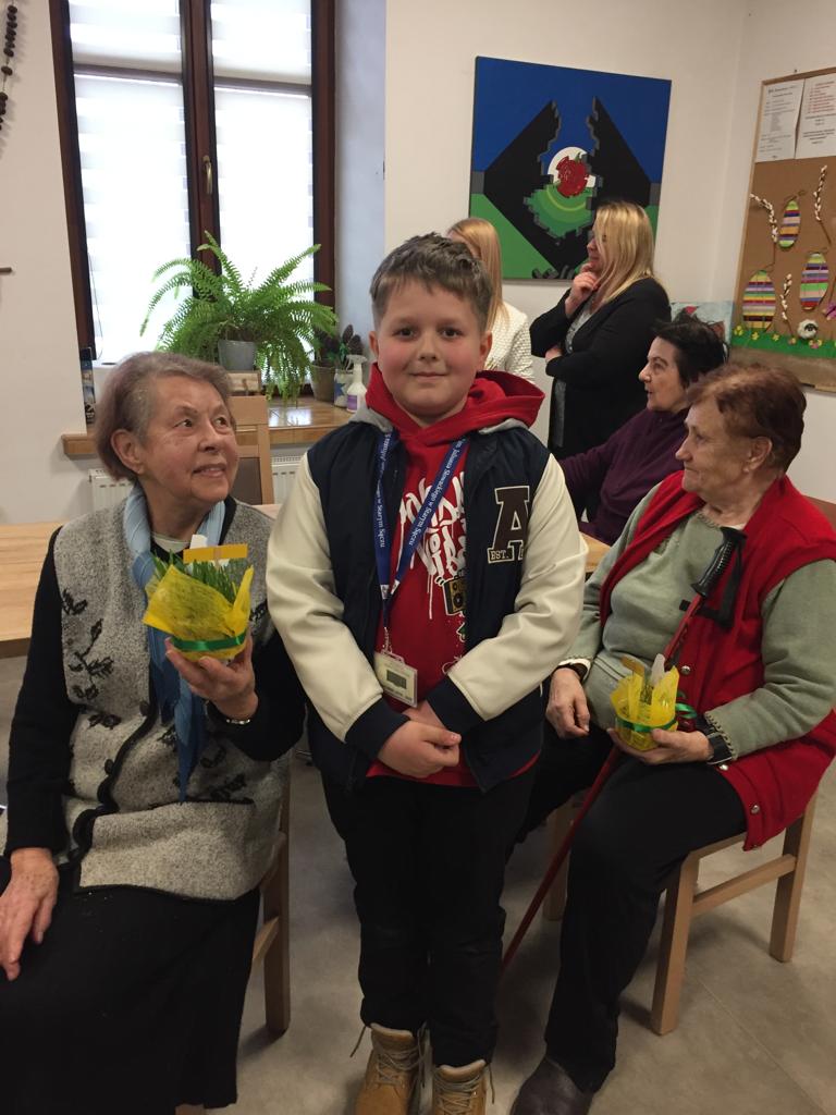 Jak co roku uczniowie klasy 4b ze Szkoły Podstawowej nr 2 wybrali się z życzeniami do Dziennego Domu Seniora w Starym Sączu. Do życzeń dołączyli własnoręcznie wykonane dekoracje świąteczne, w których nie zabrakło wielkanocnego baranka, który jest istotnym symbolem Świąt Wielkiej Nocy.