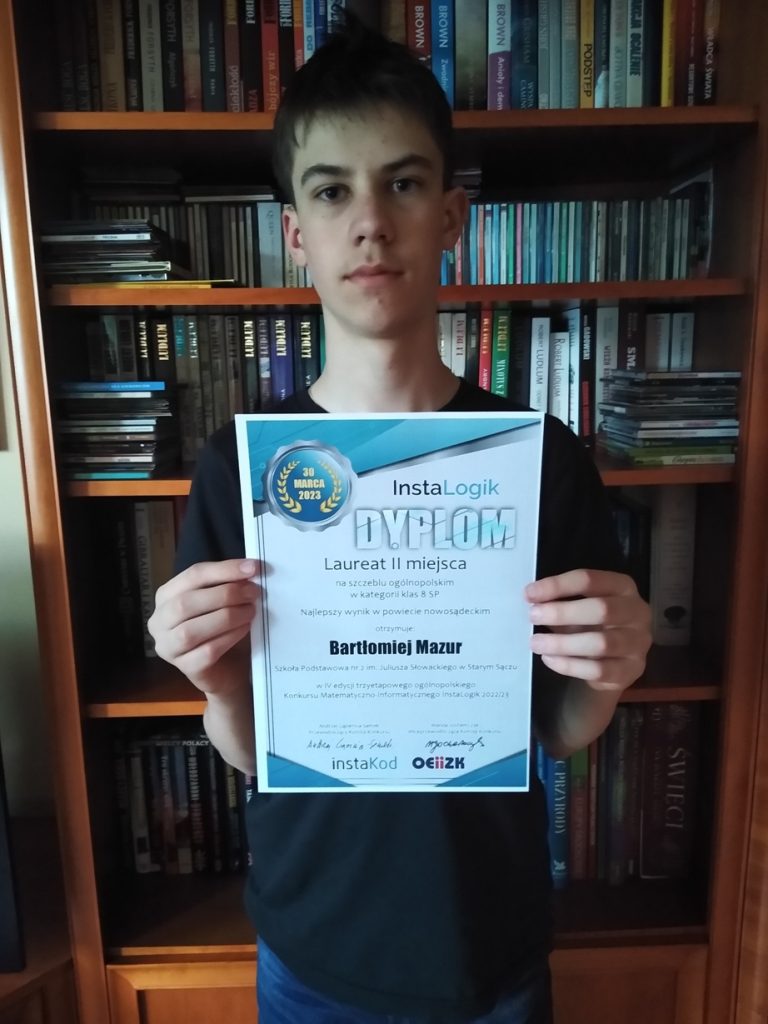 Sukces ucznia naszej szkoły w ogólnopolskim Konkursie Matematyczno-Informatycznym InstaLogik 2022/23