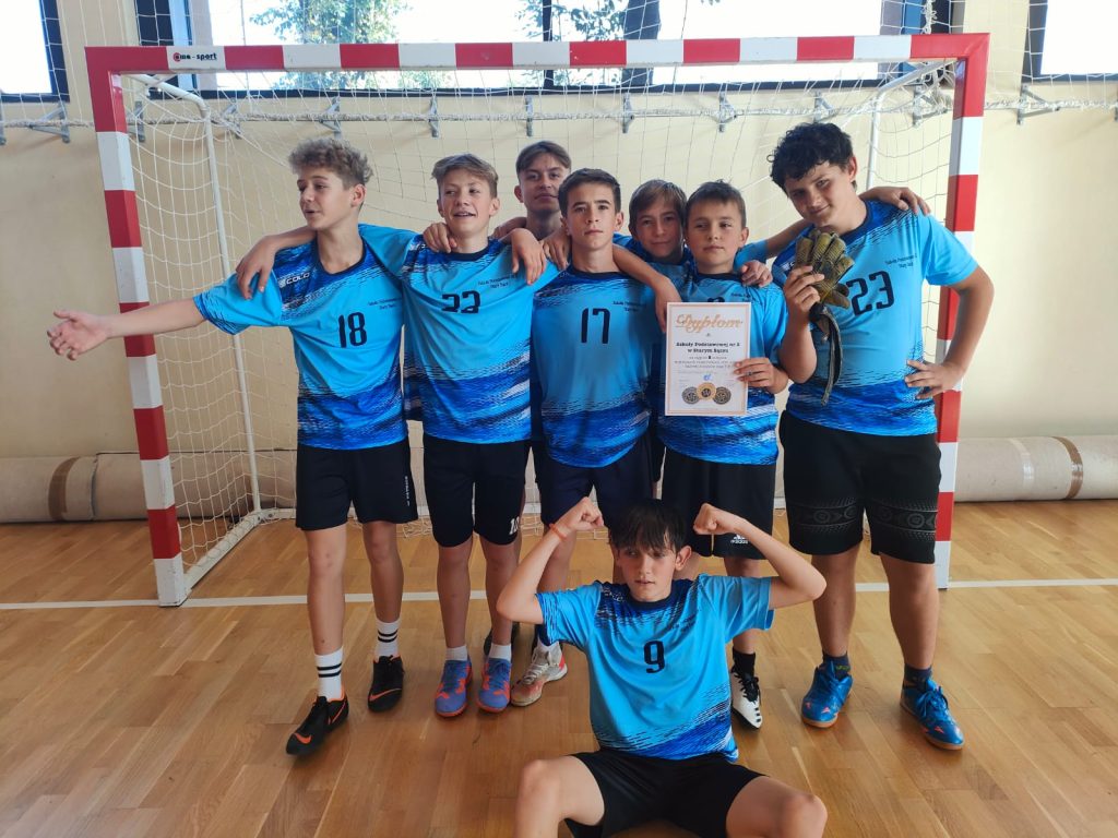 W poniedziałek na turniej zgłosili się starsi koledzy z klas 7 – 8 . Na hali przy SP 1 w Starym Sączu rywalizowali zawodnicy z Barcic, Przysietnicy, SP 1 Stary Sącz, Moszczenicy, Gołkowic i nasza reprezentacja w składzie: Fryc Radosław, Oświęcimka Maciej, Kurzeja Oliwier, Trojan Jakub, Jabłoński Igor, Obrzud Mateusz, Ciastoń Jarosław, Jankowski Jakub.. W pierwszej części turnieju pokonali kolegów z Przysietnicy i zremisowali z reprezentantami z Barcic. O wejście do finału rywalizowali zwycięsko z kolegami z SP 1 ze Starego Sącza. W meczu finałowym kolejny raz zmagali się z zawodnikami z Barcic i podobnie jak w pierwszym meczu rozpoczęli od przegrywania. Jednak wola walki sprawiła że dogonili kolegów i mecz zakończył się remisem 3 : 3. O zwycięstwie zadecydowały rzuty karne w których górą okazali się nasi uczniowie. Zdobywając 1 miejsce wywalczyli prawo startu w zawodach międzygminnych, które odbędą się w najbliższy czwartek w Rytrze.