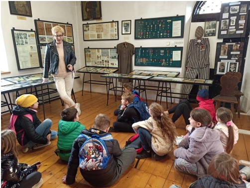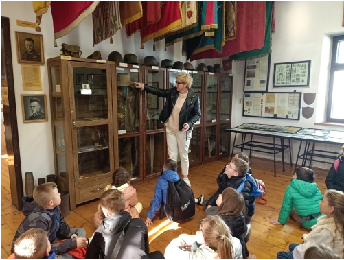 – uczniowie kl. 4a byli w Muzeum „Dom na Dołkach”, w izbie pamięci II wojny światowej, tu poznali dzieje Starosądeczan: więźniów niemieckich obozów koncentracyjnych i zagłady, nauczycieli prowadzących tajne nauczanie, żołnierzy walczących na wszystkich frontach II wojny światowej,