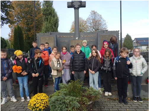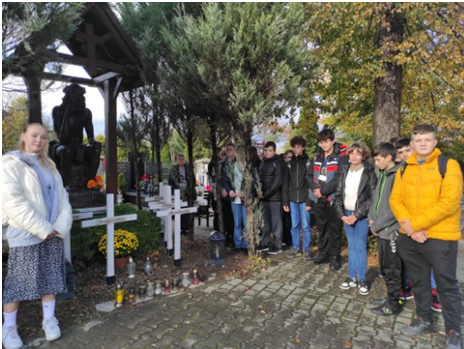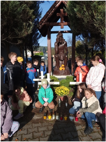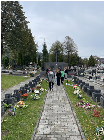 – klasy 4a i 7b wybrały się na spacer, na Nowy Cmentarz pod pomnik „Golgota Wschodu”, którym opiekują się uczniowie naszej szkoły. Uporządkowali groby, zapalili znicze, złożyli kwiaty i wysłuchali historii żołnierzy – partyzantów AK.
