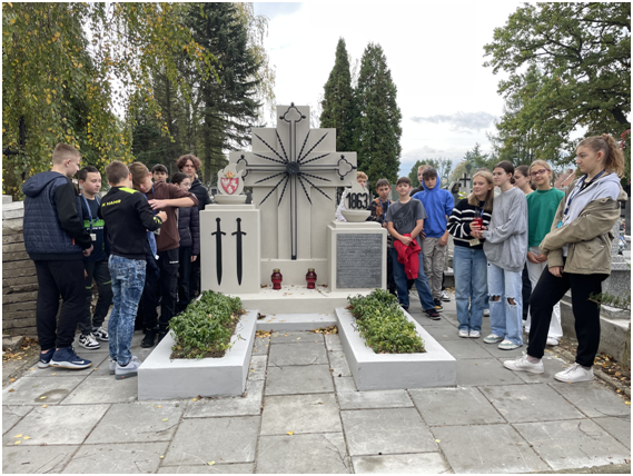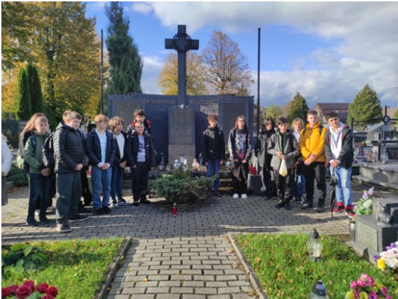 – uczniowie kl. 4a, 5a i 7b byli na Nowym Cmentarzu pod pomnikiem I wojny światowej i wysłuchali prelekcji o walkach Polaków o odzyskanie niepodległości w latach 1914 – 1918 r.