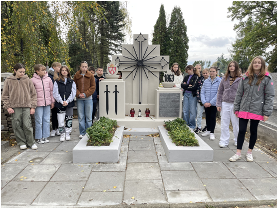 – klasy 6a i 6b odwiedziły groby na Starym Cmentarzu, zapaliły znicze i wysłuchały prelekcji pod pomnikiem Powstańców Styczniowych 1863 r.