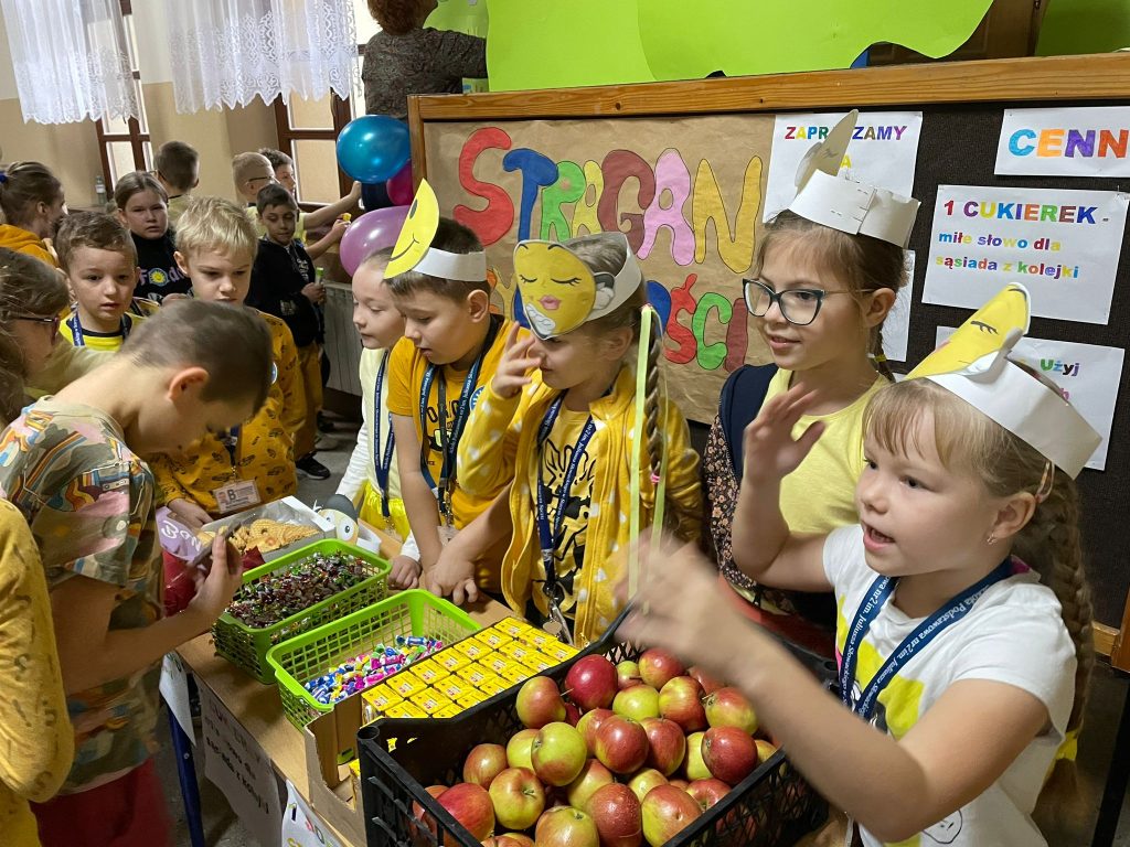 Tego dnia otworzono również na korytarzach dwa nietypowe kramy. Na dolnym korytarzu na przerwach otwierano Stragan Życzliwości dla klas IV-VIII, a na górnym korytarzu do niecodziennych zakupów na Straganie Życzliwości zapraszano uczniów klas I-III. Długie kolejki do obu straganów na każdej przerwie ustawiały się natychmiastowo. Weseli i radośni klienci nie potrzebowali pieniędzy, by zrobić zakupy, bo również i cennik był tak nietypowy jak miejsce, gdzie można było zrobić zakupy. Stragany Życzliwości znajdowały się w samym sercu Lasów Życzliwości. Wystarczyło użyć czarodziejskich słów DZIĘKUJĘ, PROSZĘ, by kupić sok; wymyślić czarodziejski ukłon, by kupić ciastka; powiedzieć miłe słowo do sąsiada z kolejki, aby kupić cukierki, a przybicie 'piątki’ koledze lub koleżance gwarantowało zakup jabłka.
