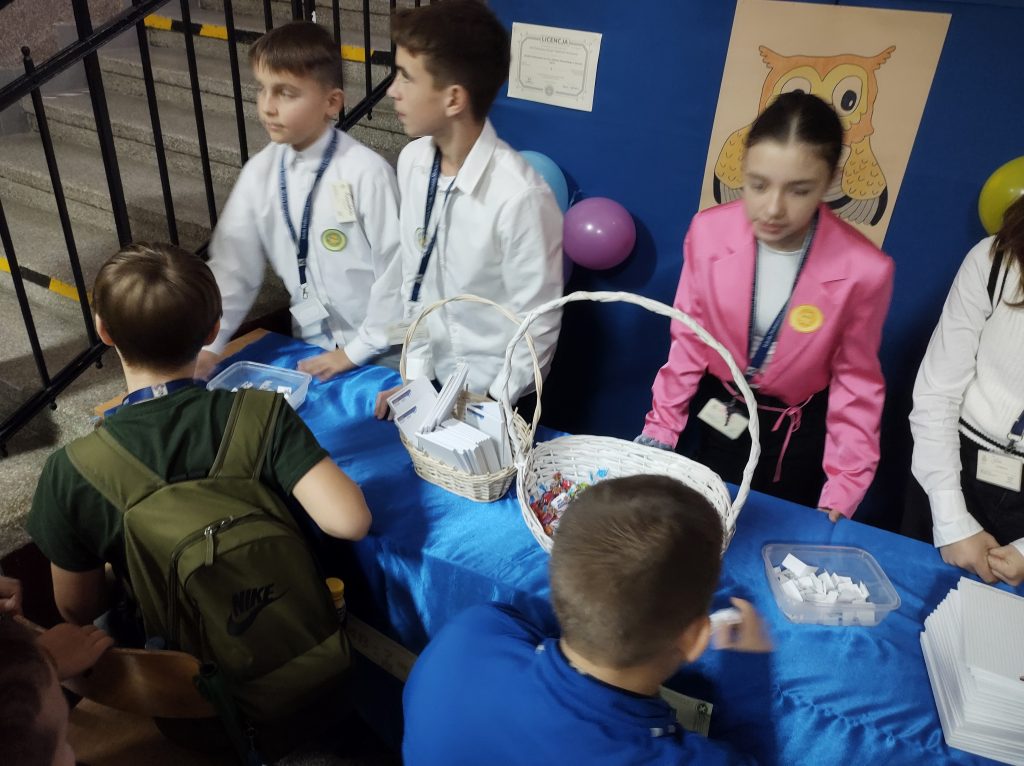 Zainteresowanie było ogromne!, każdy uczeń opuszczał loterię z satysfakcją świadczącą o znakomitej znajomości tabliczki mnożenia i otrzymaną nagrodą. Uczniowie klas młodszych również zostali zaangażowani w obchody Dnia Tabliczki Mnożenia. Wykonali piękne kolorowanki i zostali obdarowani symbolicznymi nagrodami.