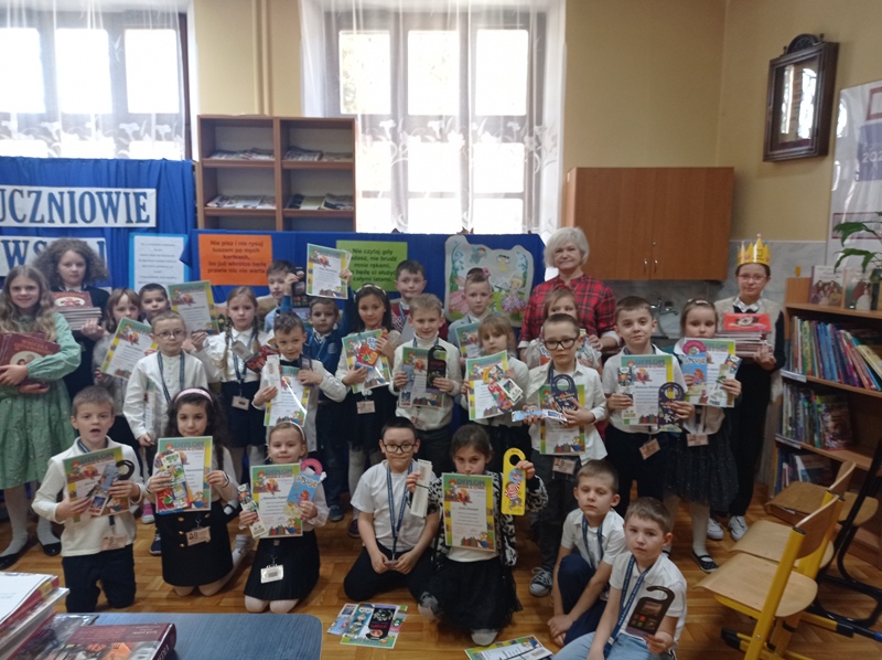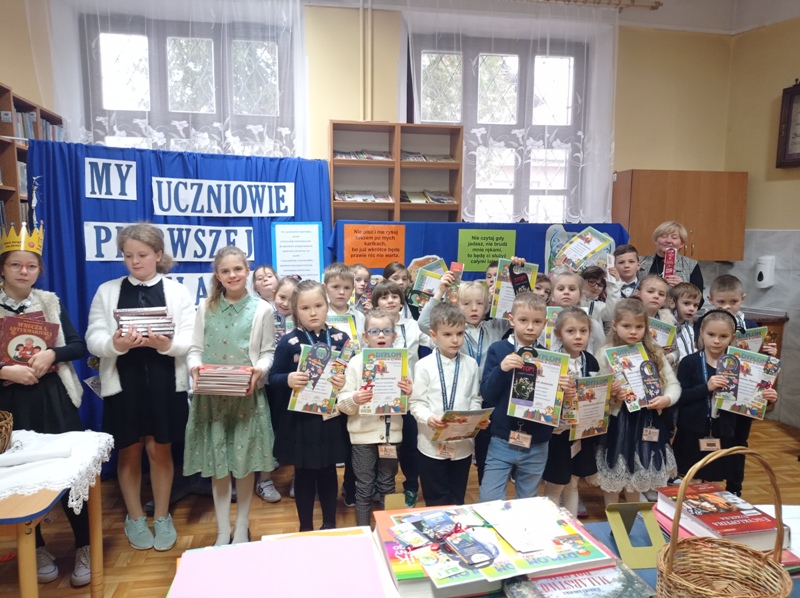 Pasowanie na czytelnika to oficjalne przyjęcie najmłodszych uczniów do grona czytelników biblioteki szkolnej. Organizowane co roku przez bibliotekę, weszło już na stałe do kalendarza wydarzeń Szkoły Podstawowej nr 2 im. Juliusza Słowackiego w Starym Sączu. Głównym celem tej imprezy czytelniczej jest promocja biblioteki szkolnej oraz zachęcenie najmłodszych uczniów do korzystania z jej zbiorów. To miejsce w szkole powinno kojarzyć się z miejscem bezpiecznym i przyjaznym, gdzie uczniowie są mile widziani, miejscem, które będą chętnie odwiedzać. Uroczystość pasowania uczniów klasy 1A odbyła się 15 grudnia, uczniów klasy 1B 18 grudnia 2023 roku. Do pięknie udekorowanej biblioteki zostali zaproszeni uczniowie wraz z wychowawczyniami – Stanisławą Bielak i Bożeną Bielak. Spotkanie rozpoczęło się akcentem muzycznym – brawurowym wykonaniem przez Antosię Makowską piosenki „Bo czytanie …” i tym samym dało początek do rozmów z uczniami o bibliotece, książkach i konieczności czytania. Nasi najmłodsi uczniowie udowodnili, że już posiadają nawyki czytelnicze, a teraz rolą szkoły będzie te zainteresowania rozwijać. Smutek na twarzach dzieci pokazał się podczas słuchania wierszy o biednych, niszczonych przez czytelników książkach. W tych rolach wystąpiły uczennice klasy piątej: Małgosia Kowal i Zuzia Szkaradek. Dzieci zaprezentowały swoje umiejętności czytelnicze, samodzielnie odczytując z dużych, kolorowych plakatów prośby zniszczonych książek. Podczas spotkania uczniowie mogli wykazać się także wiedzą ze znajomości bajek i baśni, wspólnie rozwiązując przygotowane zagadki, które zostały ukryte w wystrzałowych balonach. Wreszcie nadszedł czas na złożenie ślubowania i moment pasowania na czytelnika. Uczniowie złożyli przyrzeczenie, że będą chętnie czytać i szanować książki. Każdy uczeń, pasowany na czytelnika, otrzymał pamiątkowy dyplom i zakładki do książki. Uczniowie klasy pierwszej dodatkowo otrzymali WYPRAWKI CZYTELNICZE, przygotowane przez Instytut Książki w ramach kampanii „Mała książka – wielki człowiek”. W ich skład wchodziły: książka autorstwa Justyny Bednarek „Wnuczka antykwariusza” oraz przewodnik dla rodziców pierwszoklasisty „Kochasz? Czytaj razem z dzieckiem!” Projekt zrealizowany został ze środków Ministerstwa Kultury i Dziedzictwa Narodowego pod patronatem Ministerstwa Edukacji Narodowej. Zaproszenie czytelników do korzystania ze zbiorów biblioteki oraz wspólne zdjęcia zakończyły uroczystość. Mamy nadzieję, że miłość do książek oraz pasja czytania będą towarzyszyć uczniom na co dzień.