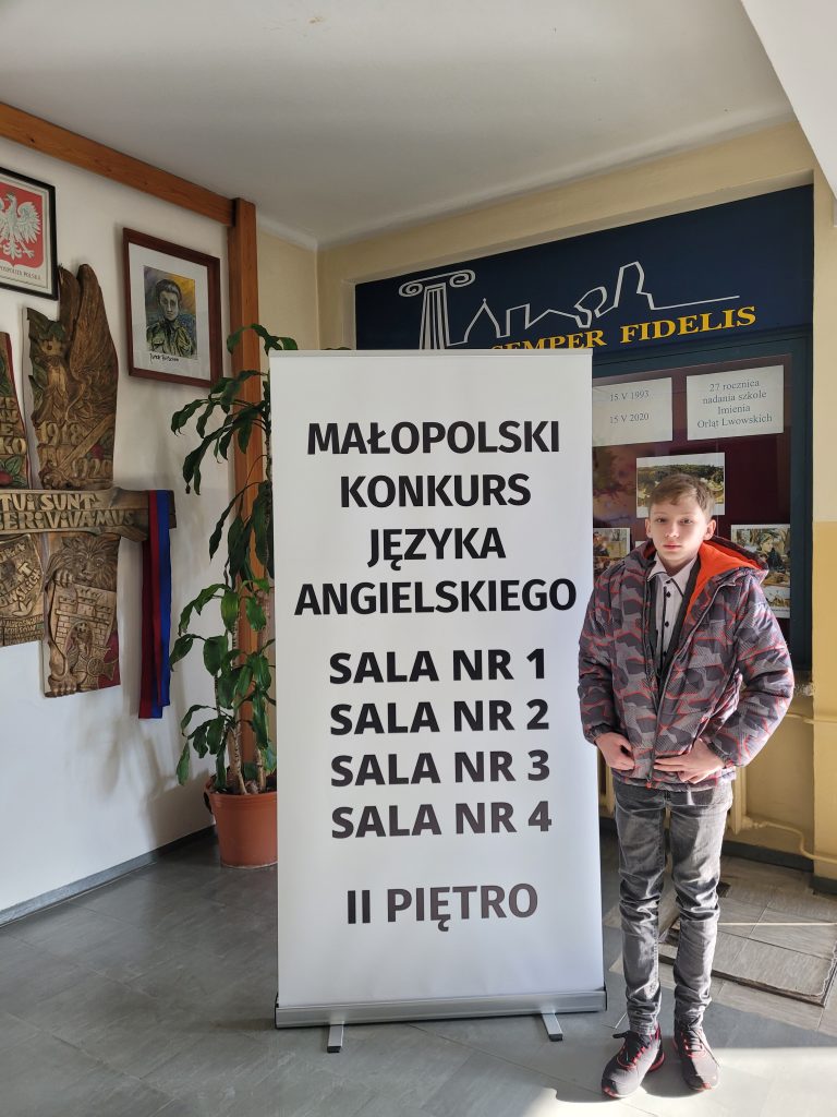 Dzisiaj, 4 marca, Karol Stawiarz, uczeń klasy 6a przystępuje do wojewódzkiego etapu Małopolskiego Konkursu Języka Angielskiego.