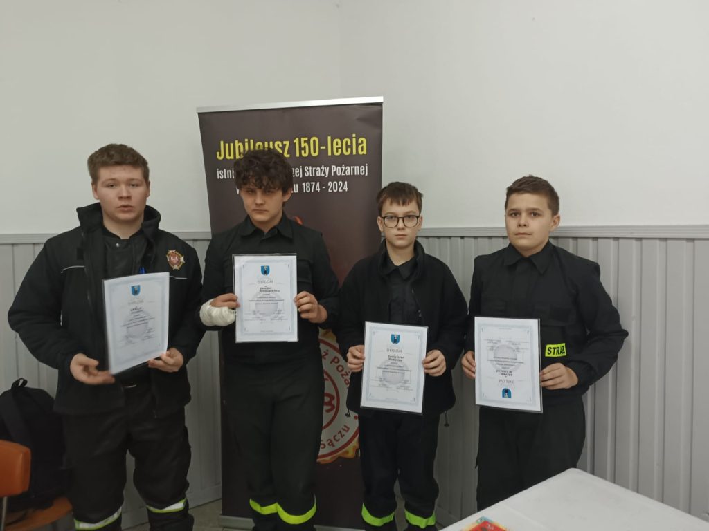W eliminacjach gminnych brało udział 46 uczniów szkół podstawowych i szkół ponadpodstawowych mieszkających na terenie gminy Stary Sącz. Konkurs polegał na rozwiązaniu testu pisemnego. Naszą szkołę reprezentowali druhowie: Kacper Wielosik kl. 6a, Jakub Jankowski kl. 7b, Franciszek Długosz kl. 6b, Karol Golonka kl. 8a pod opieką M. Maśko są członkami Młodzieżówki OSP Stary Sącz.