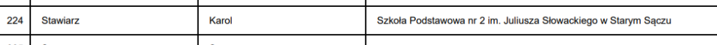 Z oficjalnego komunikatu podanego przez przewodniczącego wojewódzkiej komisji konkursowej dowiadujemy się, iż Karol znalazł się w gronie 286 finalistów – uczniów najlepszych z języka angielskiego w województwie małopolskim.