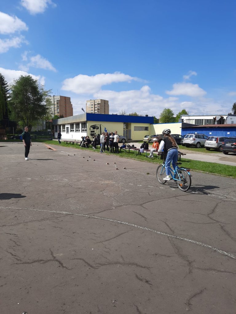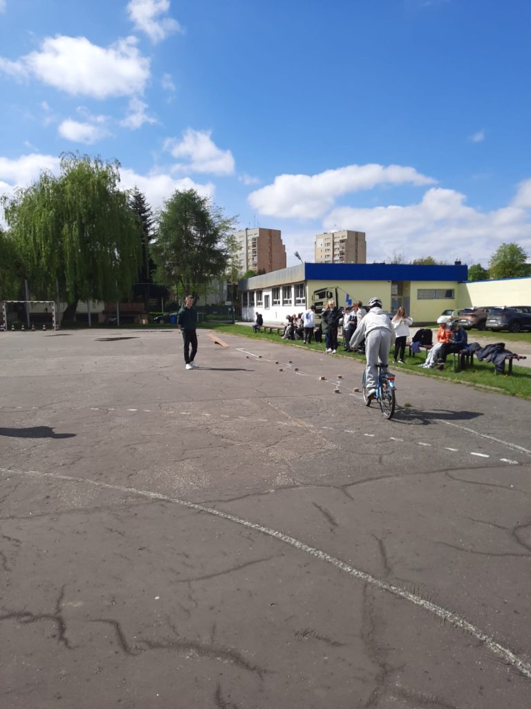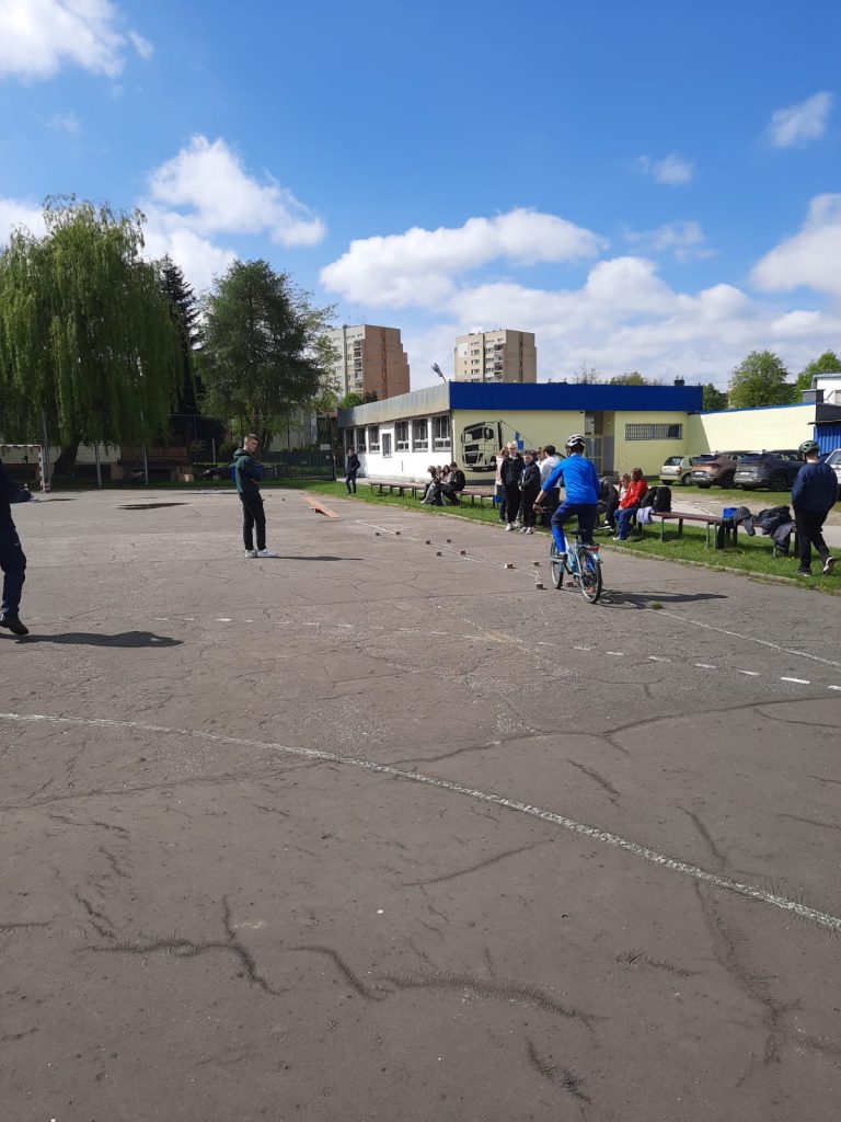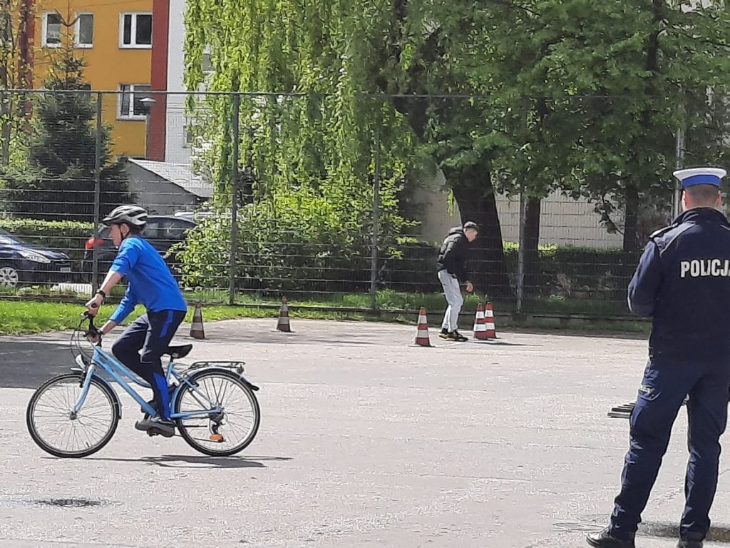 Uczniowie przystępowali do jazdy rowerem po torze sprawnościowym składającym się z przeszkód: slalomu z ograniczeniem, równoważni, zmiany pasa ruchu, zawracania w kwadracie, tarki i rynny.