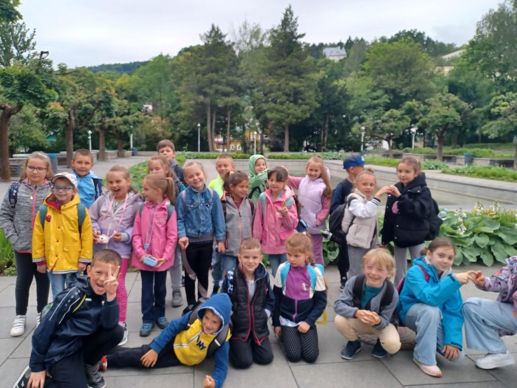 Dnia 12 czerwca 2024 r. klasa 1a wraz z opiekunami, p. Stanisławą Bielak i p. Justyną Tyka wyruszyliśmy na całodniową autokarową wycieczkę do Krynicy – Zdroju oraz w drodze powrotnej odwiedziliśmy Kamianną. Grupę wycieczkową prowadził przewodnik, pan Andrzej z Agencji Turystycznej WAT – SZKOLTUR. Celem wyjazdu było zapoznanie uczestników z walorami turystycznymi regionu, zwiększenie oddziaływań prozdrowotnych oraz poznanie biologii rodziny pszczelej w pasiece BARĆ w Kamiannej. Po przyjeździe do znanego ośrodka uzdrowiskowego i sanatoryjnego całą grupą udaliśmy się na poranny spacer Deptakiem Krynickim, podziwiając uroki tego miejsca. Następnie podjechaliśmy do Muzeum Zabawek – odbyła się tu lekcja muzealna. Muzeum Zabawek to magiczne miejsce, w którym dzieci z radością i zdumieniem odkrywają zabawki swoich rodziców i dziadków, a dorośli z uśmiechem przenoszą się w świat zapomnianych dziecięcych fantazji. Dzieci obejrzały ekspozycje starych zabawek, wysłuchały ciekawych opowieści przewodnika o zabawkach, ich historii i działaniu.Są tu teatrzyki domowe, szopki bożonarodzeniowe, zabawki znane z filmów, lalki i ich akcesoria, zabawki blaszane, militaria chłopięce, klocki, pluszowe misie, zabawki optyczne, samograje i wiele, wiele innych. Są też przybory szkolne i mini-klasa sprzed 50 lat. Na koniec zwiedzania dzieci mogły zakupić sobie zabawki i pamiątki w muzealnym sklepiku.