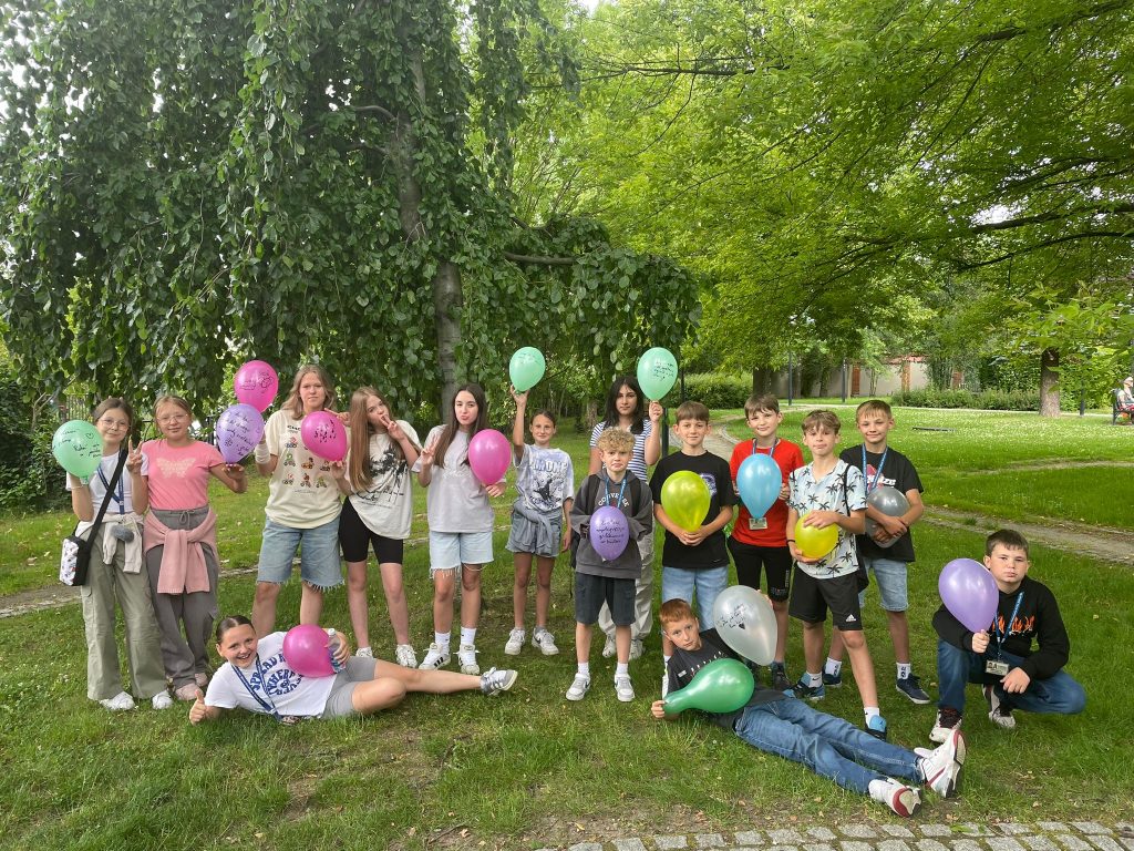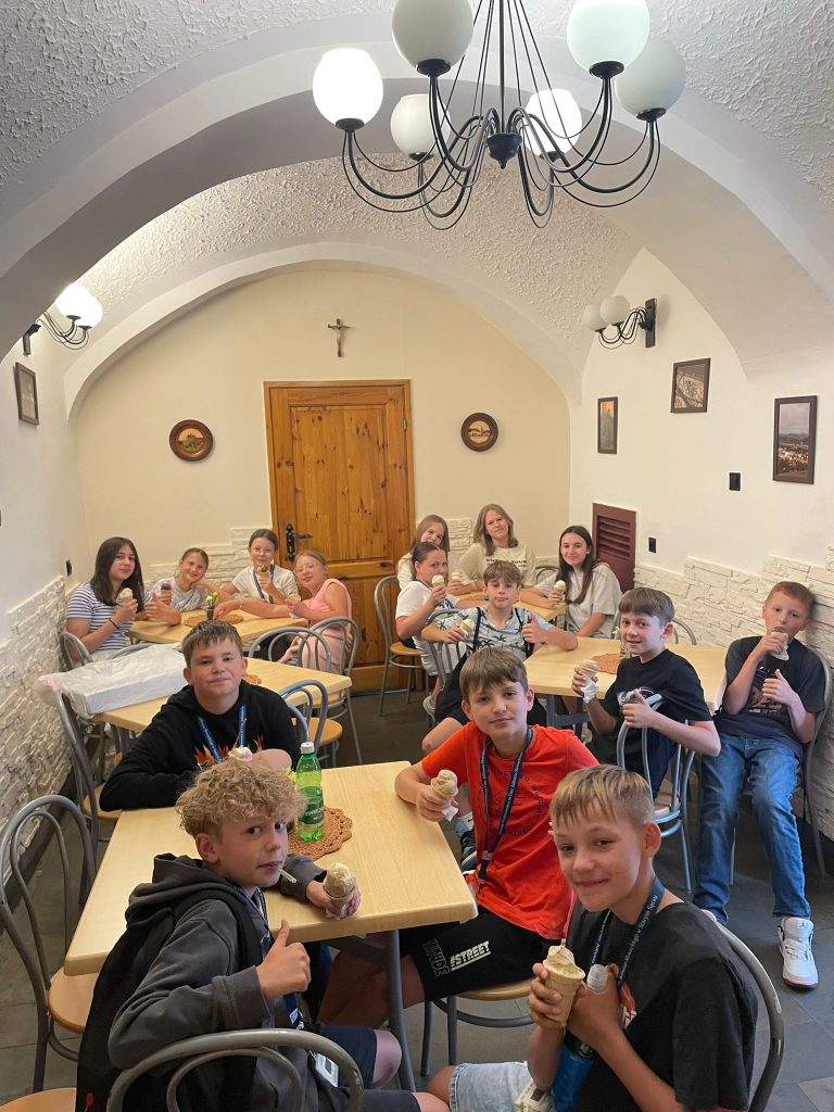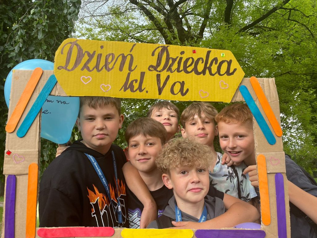 3 czerwca 2024 r (poniedziałek), czyli Dzień Dziecka w 5a na długo zapadnie nam w pamięć. Najpierw pyszne lody w Cukierni Jeziorek i układanie w grupach z puzzli portretu tajemniczej postaci, której dotyczył konkurs zespołowy, a potem wyruszamy w pogoń za najskrytszymi marzeniami i w starosądeckim parku wśród zieleni i w cieniu drzew na kolorowych balonach zapisujemy swoje marzenia. Na wszystkich czeka też tam specjalna klasowa fotobudka przygotowana przez wychowawcę klasy. Tworzymy więc klasowe wspomnienia. A potem dzięki niespodziance od Rodziców docieramy do Restauracji Marysieńka, gdzie delektujemy się pyszną pizzą. Zanim jednak pizza pojawi się na naszych stołach na tarasie restauracji wychowawca klasy zaprasza uczniów do konkursu wiedzy o postaci ułożonej w cukierni z puzzli, czyli o Juliuszu Słowackim, patronie naszej szkoły, a za poprawne odpowiedzi każda drużyna otrzymuje papierowe motyle, które tworzą ramkę na portrecie ułożonym z puzzli. Gdy pyszna pizza pojawia się na stołach czas na wspólne rozmowy i uśmiechy przy stole. Ciąg dalszy klasowego konkursu o patronie szkoły odbędzie się podczas ostatniej integracyjnej wyprawy uczniów klasy 5a starosądeckimi ścieżkami we czwartek, 20 czerwca 2024 roku.