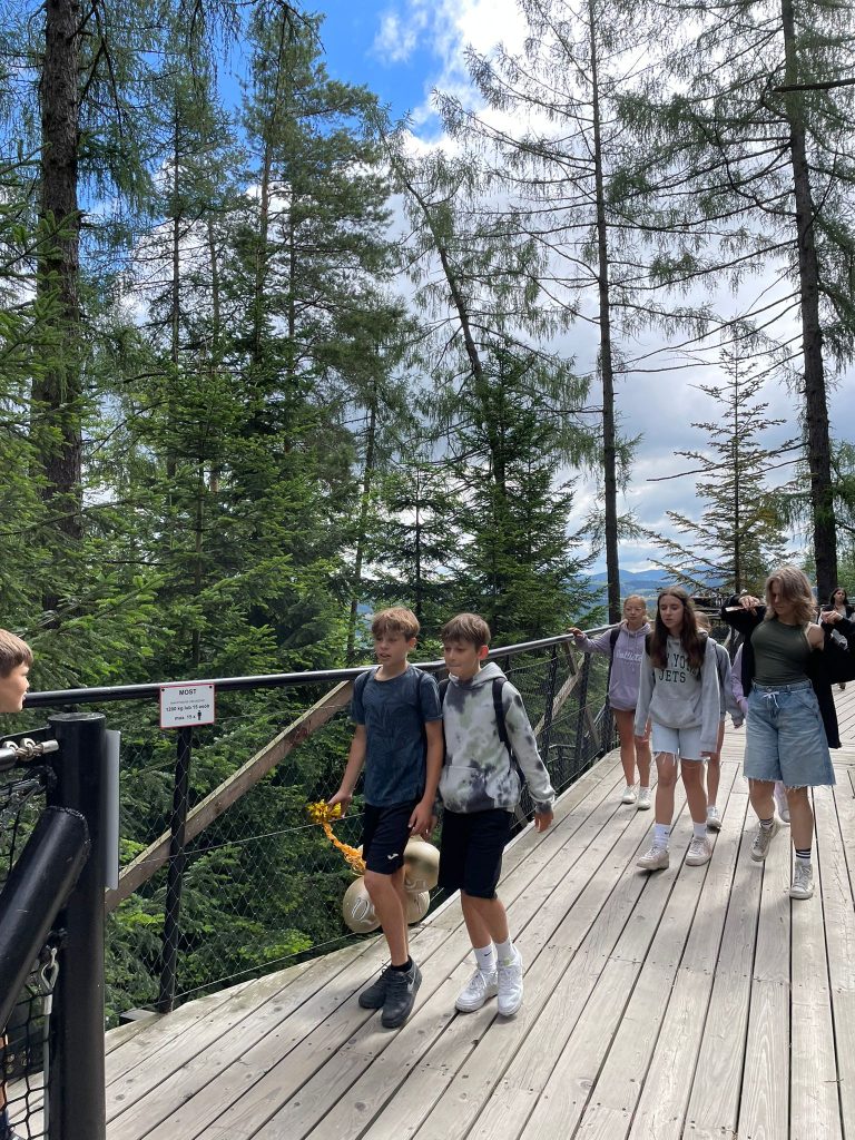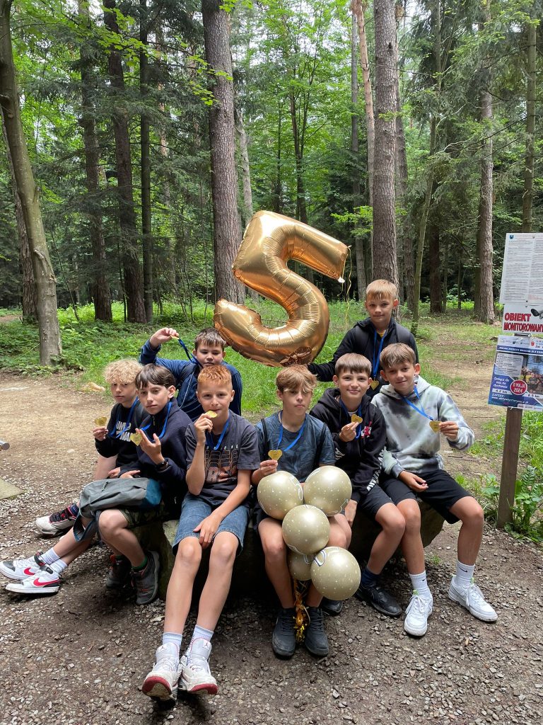 Po dotarciu na Leśne Molo wyruszyliśmy na spacer ścieżką w koronach drzew, by spojrzeć z lotu ptaka na starosądecki krajobraz, a następnie wychowawczyni przygotowała dla uczniów niespodziankę na zakończenie klasy piątej. Każdy uczeń otrzymał od wychowawcy medal gratulacyjny w kształcie serca za tegoroczne sukcesy w klasie 5a. Każdy uczeń osiągnął przecież mniejsze lub większe sukcesy nie tylko w nauce, ale również wielu innych dziedzinach codziennego szkolnego życia.
