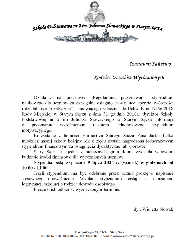 Wypłata stypendium naukowego dla uczniów za szczególne osiągnięcia w nauce, sporcie, twórczości i działalności artystycznej