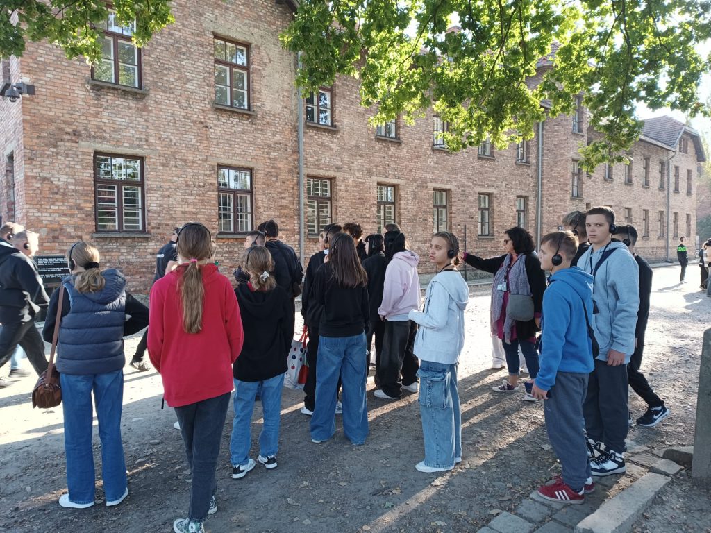 W dniu 20 września 2024 r. uczniowie klas 8a i 8b wyruszyli na wycieczkę naukową do jednego z najważniejszych miejsc w historii Polski – Muzeum Auschwitz-Birkenau. Nie była to typowa wycieczka szkolna, gdyż uczniowie odwiedzili największy cmentarz świata, zobaczyli jedno z najsmutniejszych miejsc na świecie, przepełnione ludzką tragedią, barbarzyństwem, nienawiścią i upadkiem człowieczeństwa. Zobaczyli z bliska czym była wojna i jaką cenę płacili i wciąż płacą za nią narody. Nasi uczniowie w refleksji i zadumie zobaczyli Miejsce Pamięci, baraki, rampę, ubrania, cele, zdjęcia, krematorium i inne smutne pamiątki obozu zagłady Auschwitz-Birkenau. Nasza młodzież w skupieniu i powadze należnej temu miejscu zwiedziła teren byłego obozu. Wycieczka ta była na pewno ważną lekcją i młodzież zapamięta ją na bardzo długo.