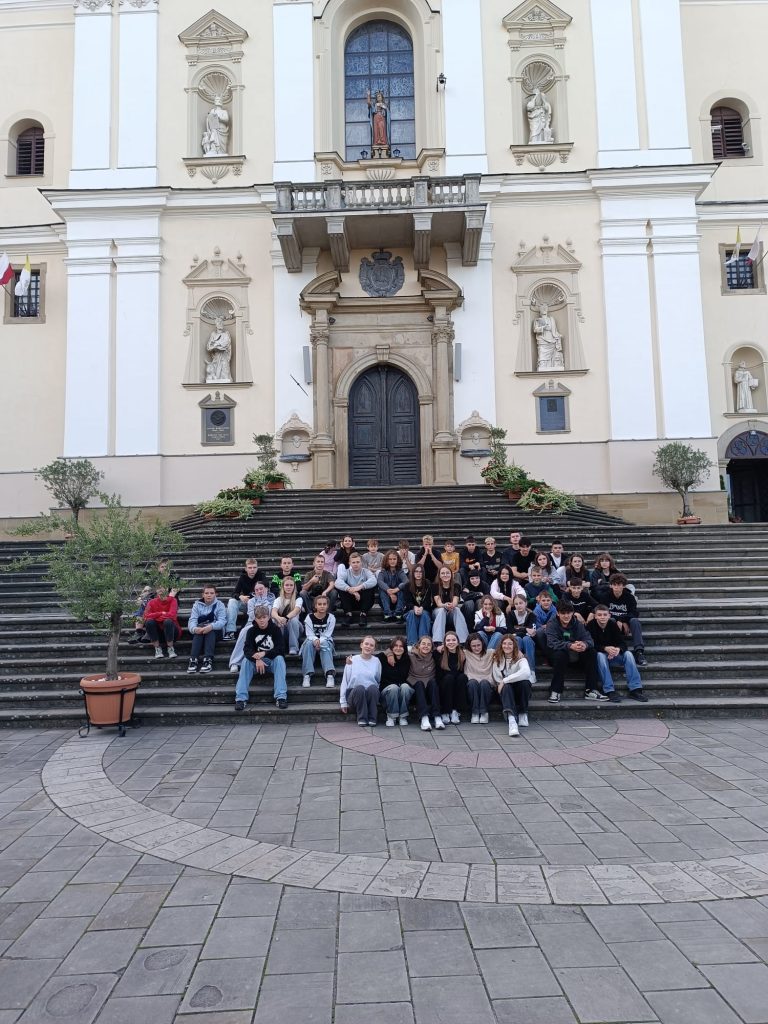 Na koniec dotarliśmy do Kalwarii Zebrzydowskiej, dzięki przewodnikowi młodzież dowiedziała się dużo ciekawych informacji o Sanktuarium Kalwaryjskim oraz że Papież Jan Paweł II był mocno związany z Kalwarią przybywał tu wielokrotnie. Pielgrzymował tu już jako mały chłopiec wraz ze swoim ojcem z pobliskich Wadowic. Pielgrzymował potem z Krakowa, ale przybywał także prywatnie dla odprawienia dróżek i dla odwiedzenia Matki Bożej. Przybył też w dniu 7 VI 1979 roku jako Papież, w czasie swojej I Pielgrzymki do kraju. Wycieczka była bardzo interesująca i na pewno pozostanie w pamięci uczniów, którzy wykazali się wzorową postawą.