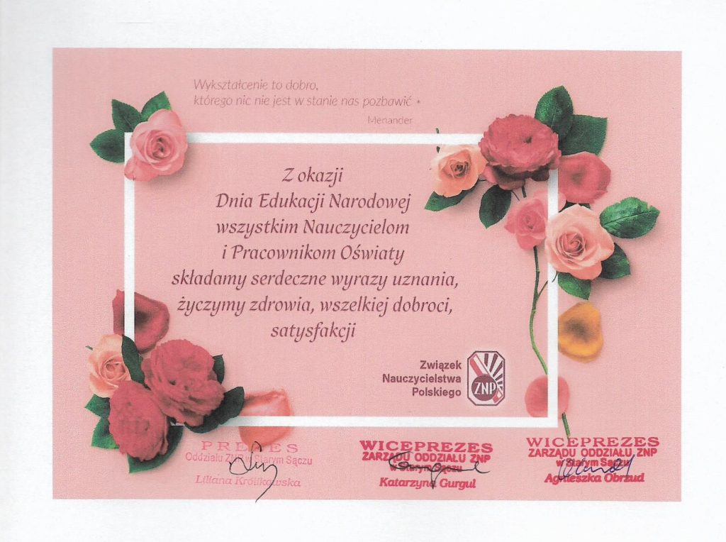 Związek Nauczycielstwa Polskiego przesyła serdeczne życzenia z okazji Dnia Edukacji Narodowej