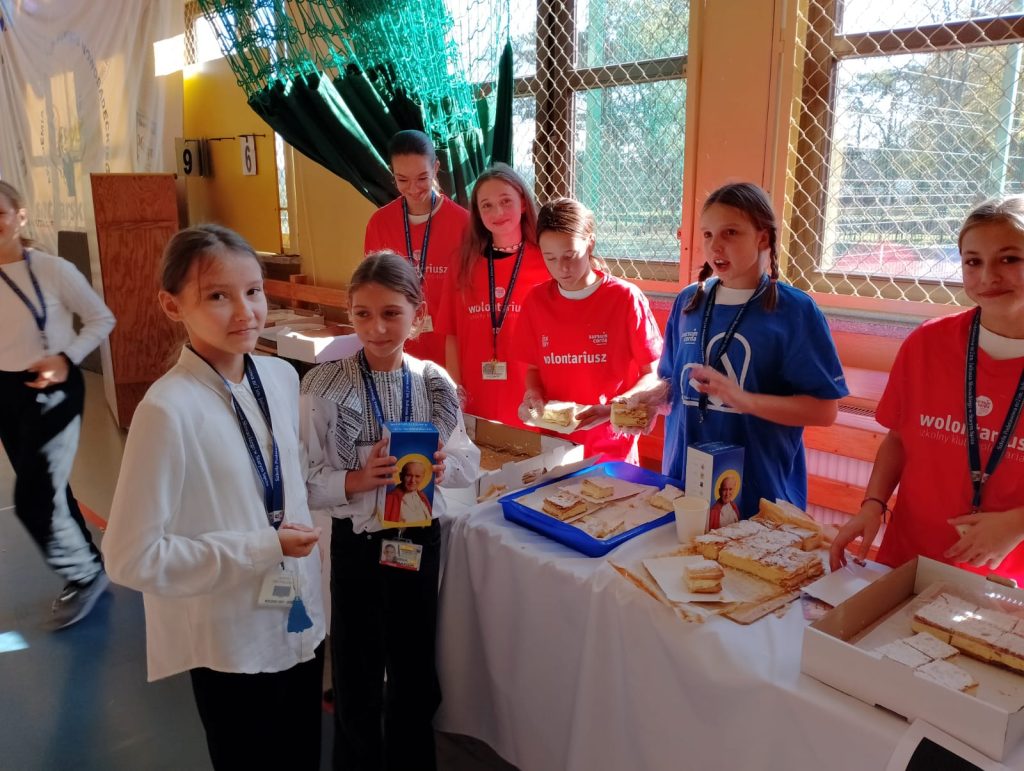22 października to dzień rozpoczęcia pontyfikatu przez Jana Pawła II. W naszej szkole odbyła się uroczysta akademia wdzięczności za dar Św. Papieża, połączona z akcją „Kremówka Papieska”. Chcieliśmy kontynuować tradycję rozpoczętą w ubiegłym roku szkolnym. W tym roku środki pozyskane z rozprowadzenia kremówek będą przeznaczone na wsparcie osób poszkodowanych w ostatniej powodzi. Będzie to jednocześnie dopełnienie akcji, która trwa w naszej szkole” Szkoła dla Szkoły”, w której pomagamy dzieciom z konkretnej placówki dotkniętej powodzią . Klasy w związku z dzisiejszą akcją „ Kremówka Papieska” przygotowały kremówki, za co pragniemy podziękować uczniom za wrażliwość na potrzeby innych oraz Rodzicom za wielkie wsparcie.