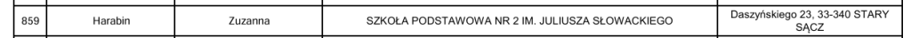 - Zuzanna Harabin – klasa 8b – opiekun: pani Agnieszka Obrzud