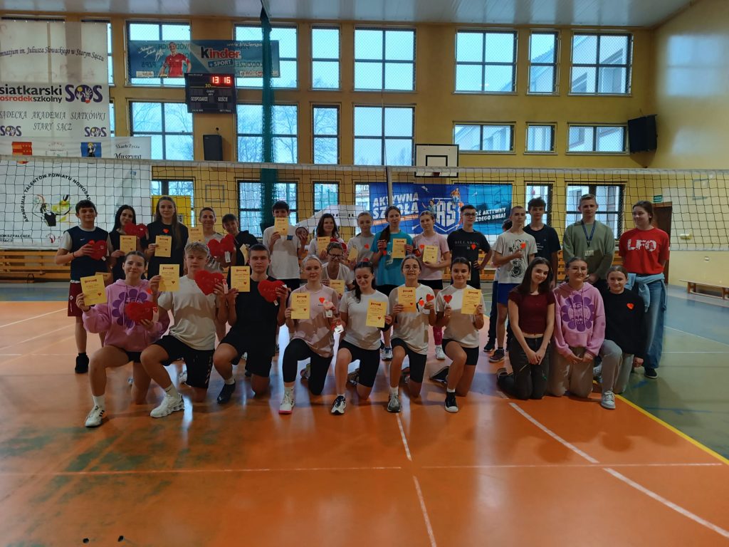 ❤14 lutego 2025 jak co roku został zorganizowany przez nauczycieli WF Macieja Rejowskiego i Małgorzatę Maśko ❤ Turniej Walentynkowy ❤ w 🏐piłkę siatkową dwójkami💞👫 dziewczyna + chłopiec, w dwóch grupach wiekowych klasy 5-6 i klasy 7-8.