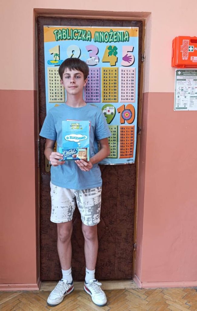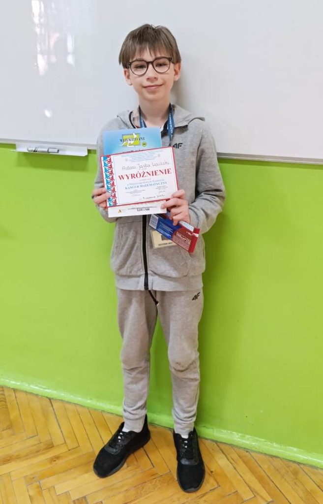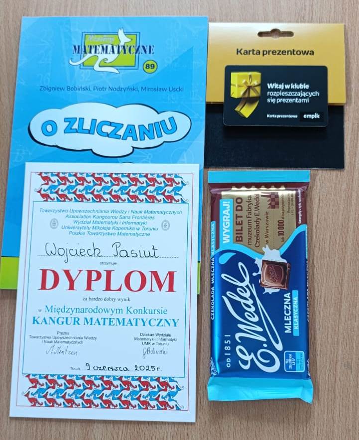 Z dumą informujemy, że Wojciech Pasiut z klasy 5b uzyskał wynik „bardzo dobry” i otrzymał nagrodę książkową Miniatury matematyczne oraz talon o wartości 125 zł do wykorzystania w salonach Empik.