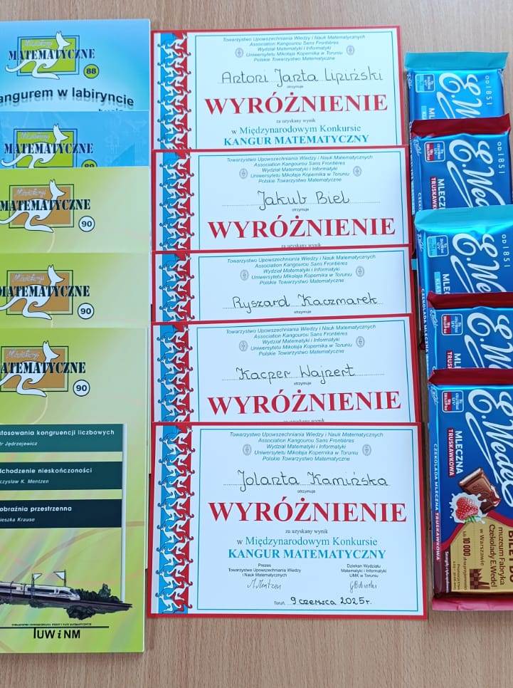 Konkurs Kangur Matematyczny to jedno z największych międzynarodowych wydarzeń edukacyjnych promujących logiczne myślenie i umiejętności matematyczne. W tegorocznej edycji w Polsce wzięło udział ponad 280 000 uczniów ze szkół podstawowych i średnich. Z naszej szkoły w konkursie uczestniczyło 33 uczniów z klas IV–VIII, podzielonych na trzy kategorie wiekowe: