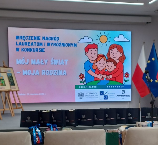 Kolejnym wydarzeniem był udział w uroczystej gali połączonej z uhonorowaniem laureatów konkursu plastycznego „Mój mały świat – moja rodzina” zorganizowanego przez wojewodę małopolskiego dr. inż. Krzysztofa Jana Klęczara oraz wystawą zwycięskich prac w Małopolskim Urzędzie Wojewódzkim w Krakowie.