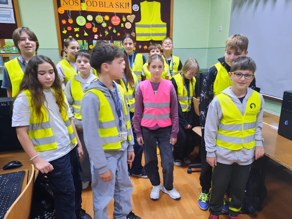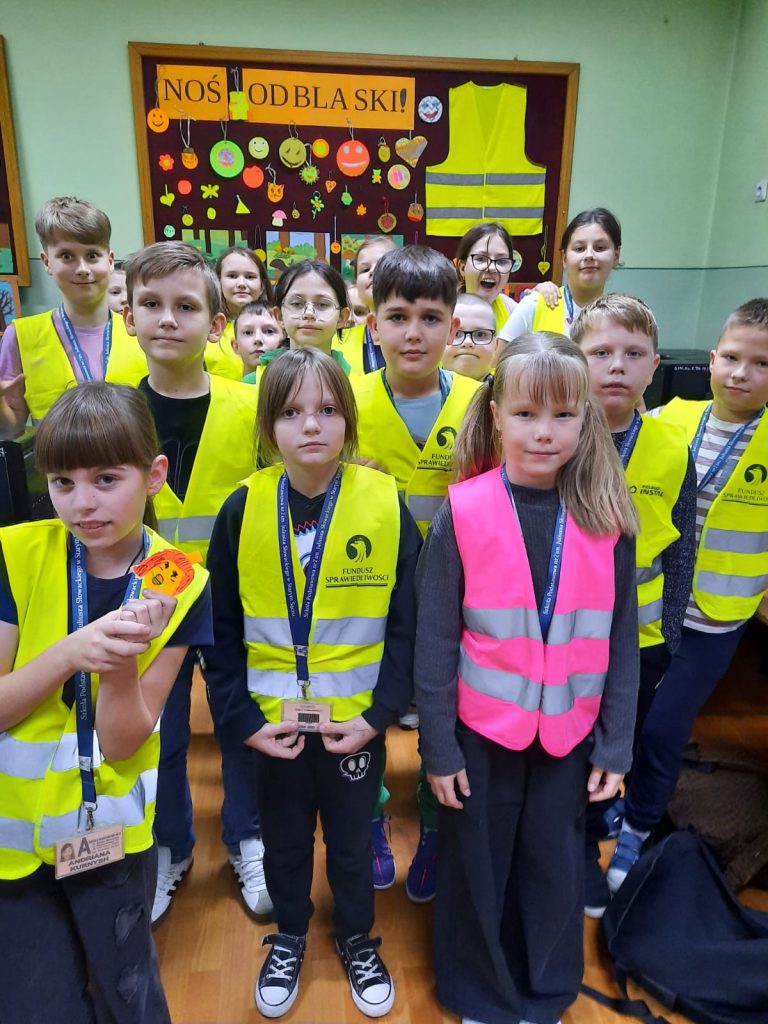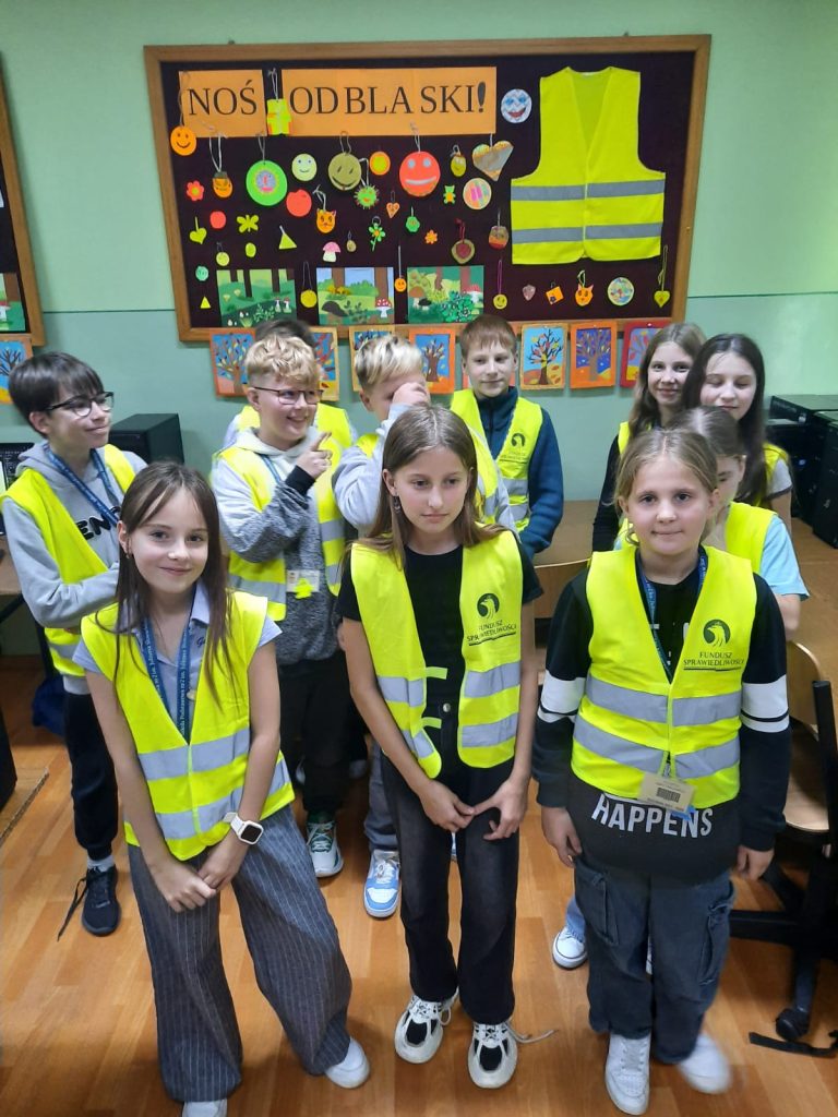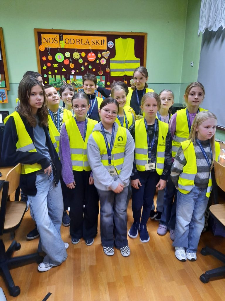 Celem zajęć było uświadomienie uczniom, że noszenie odblasków po zmroku jest kluczowe dla ich bezpieczeństwa, ponieważ znacznie zwiększa widoczność pieszego dla kierowców. Zajęcia miały na celu pokazanie im, jak ważne jest przestrzeganie zasad ruchu drogowego oraz jakie są konsekwencje ich nieprzestrzegania. Uczniowie zostali zapoznani z przepisami ruchu drogowego dotyczącymi noszenia odblasków, w tym obowiązkiem noszenia ich poza terenem zabudowanym (z wyjątkiem chodnika lub drogi przeznaczonej wyłącznie dla pieszych). Uczniowie dowiedzieli się, jak prawidłowo umieścić odblaski, aby były jak najlepiej widoczne dla kierowców z dużej odległości, co jest szczególnie ważne poza terenem zabudowanym.