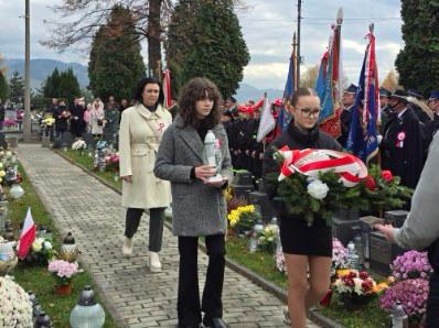 Podczas uroczystości naszą szkołę reprezentował Poczet Sztandarowy oraz delegacja uczniów na czele z Panią Dyrektor Wiolettą Nowak. Uczniowie złożyli pamiątkowe wiązanki i znicze pod pomnikami ofiar I i II wojny światowej oraz pod pomnikiem „Golgota Wschodu”, przy którym uczennice naszej szkoły pełniły wartę honorową.