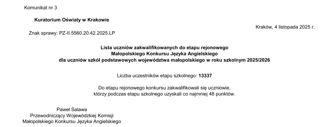 Sukces w Małopolskim Konkursie z Języka Angielskiego