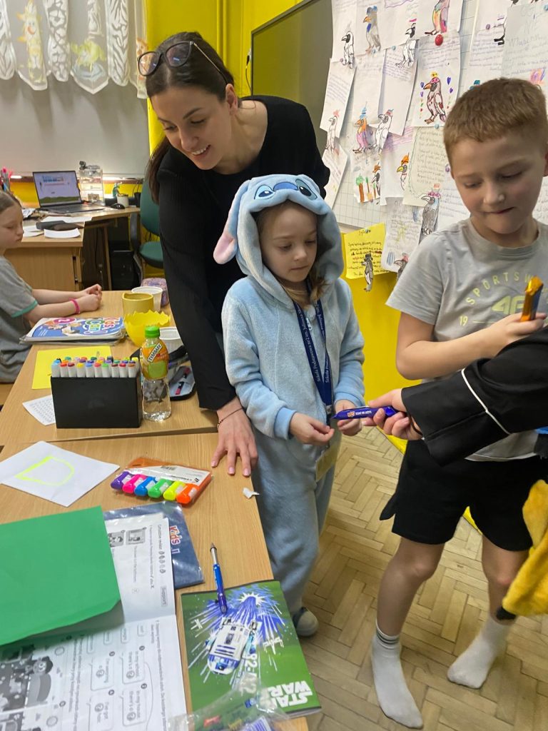 Zabawa miała również element rywalizacji. Specjalne jury oceniało zaangażowanie i pomysłowość poszczególnych oddziałów. W kategorii klas młodszych bezkonkurencyjna okazała się klasa 2a, która w nagrodę otrzymała kosz pełen słodyczy. Z kolei wśród starszych uczniów triumfowała klasa 5a, udowadniając, że nawet starsze dzieci potrafią świetnie bawić się wspólną inicjatywą.