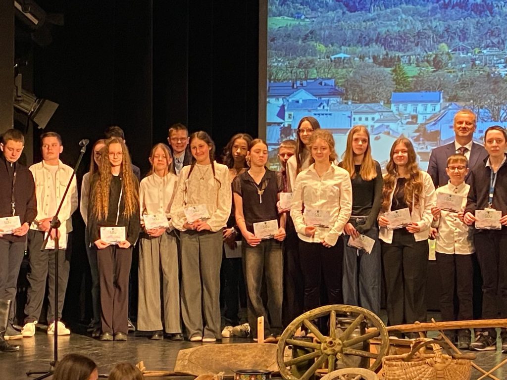 Za nami finał czwartej edycji gminnego konkursu historycznego. Naszą szkołę w finale, który odbył się 16 kwietnia, reprezentowali uczniowie klasy 8 b Weronika Dyrek, Patrycja Janecka, Liliana Piątkowska i Kacper Jabłoński. Zakres wiedzy wymaganej w konkursie był ogromny i bardzo szczegółowy. Uczestniczki musiały opanować historię miasta i regionu od czasów najdawniejszych do wydarzeń z okresu autonomii galicyjskiej. Większośćpytań finałowych dotyczyła właśnie okresu zaboru austriackiego, obejmowały one kwestie szkolnictwa, funkcjonowania samorządu, losy sławnych postaci związanych z historią regionu ale też dotyczyły życia codziennego mieszkańców a także wydarzeń z okresu I Wojny Światowej. Pytania w tegorocznej edycji były bardzo trudne i wymagały nie tylko wiedzy, opanowania stresu ale także refleksu. Nasi uczniowie zdobyli cenne doświadczenie oraz ogromną satysfakcję z uzyskanych wyników. Lilianie Piątkowskiej, która czwarty rok z rzędu znalazła się w finale, udało się wywalczyć I miejsce na podium z nagrodą 1950 zł, tuż za Lilianą, po imponującej dogrywce, na II miejscu znalazł się Kacper Jabłoński z kwotą 1550 zł, następnie III miejsce zajęła Patrycja Janecka i otrzymała nagrodę 1250 zł, zaś Weronika Dyrek uplasowała się na VI miejscu z kwotą 600 zł. Podczas uroczystej gali nagrodzone też zostały osoby z wysoką lokatą uzyskaną w drugim etapie, z naszej szkoły byli to następujący uczniowie: Patryk Plata, Marta Wójcik, Małgorzata Kowal, Jakub Skoczeń, Michalina Zielonka, Pola Odeyemi, Weronika Rams, Mateusz Tokarz, Oliwia Węgrzynek, Dominika Bołoz, Sebastian Grabski i Julia Trzajna.Wszyscy uczniowie otrzymali bon o wartości 50 zł.
