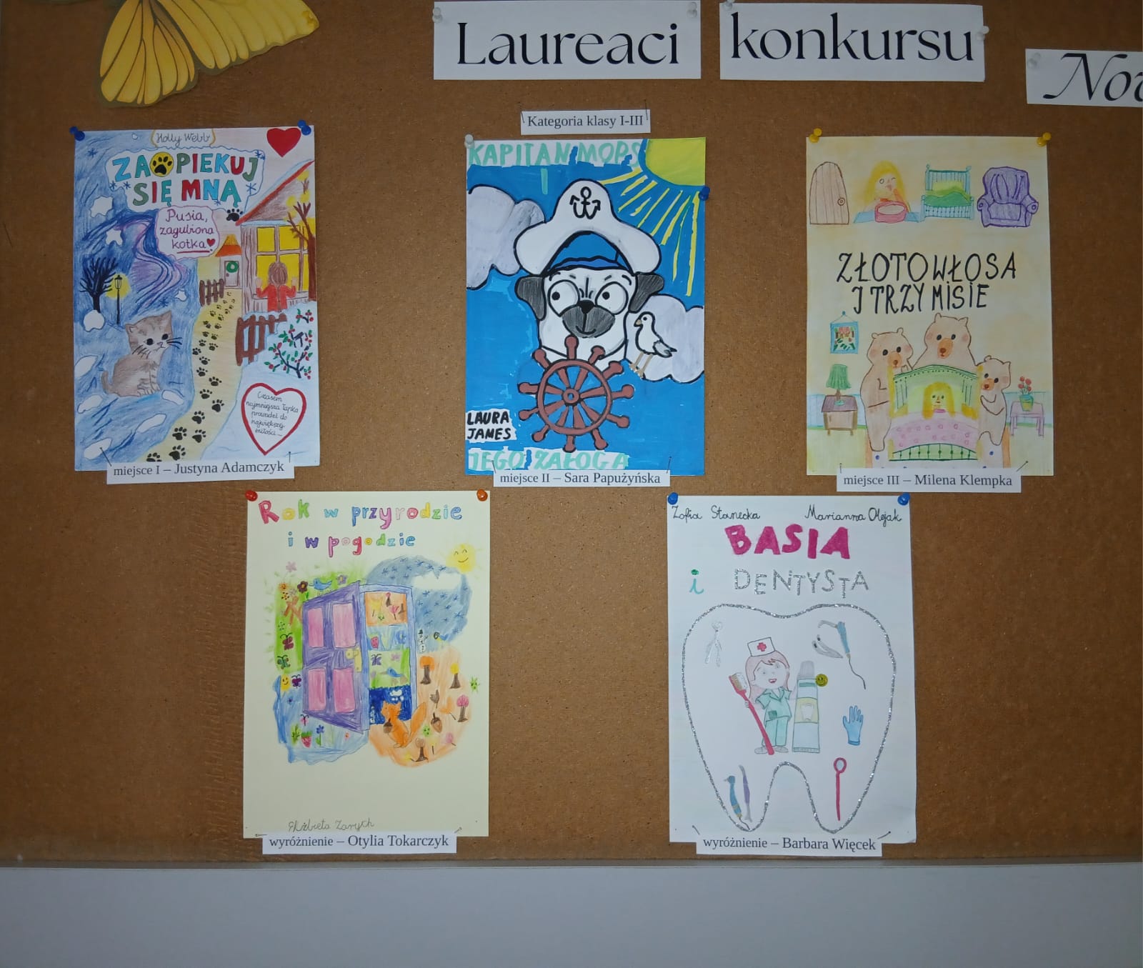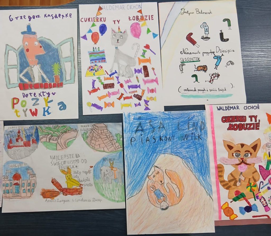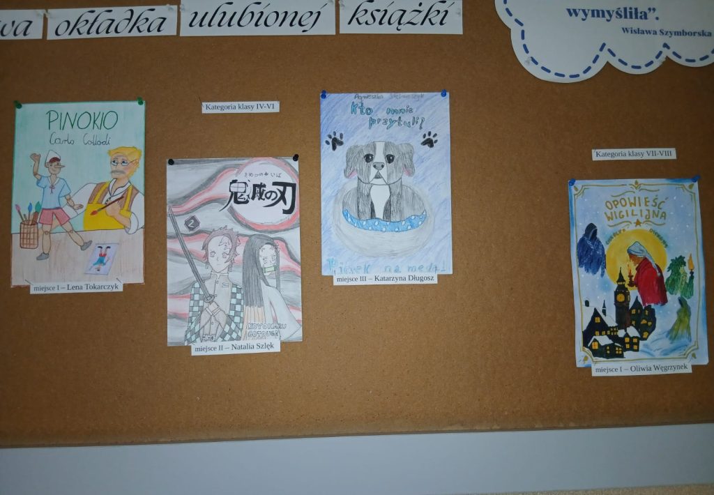 Biblioteka naszej szkoły zorganizowała konkurs czytelniczo-plastyczny. Zadaniem uczestników było zaprojektowanie nowej okładki do wybranej, przeczytanej wcześniej książki.
