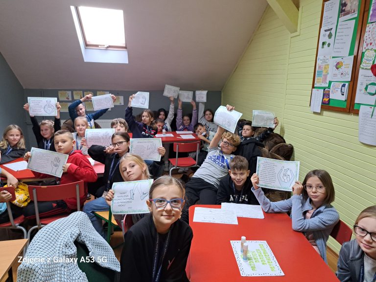 W ubiegłym roku szkolnym klasy pierwsze brały udział w projekcie – konkursie zatytułowanym „Polska – moja mała ojczyzna” zorganizowanym przez Fundację FYLION. Dzieci uzupełniały specjalne książeczki odpowiedziami na trudne pytania z historii Polski, kolorowały symbole narodowe, śpiewały patriotyczne piosenki. Jakaż była radość, gdy…